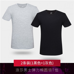 2件浪莎透氣春夏簡約男士彈力棉圓領(lǐng)運動T恤領(lǐng)休閑短袖