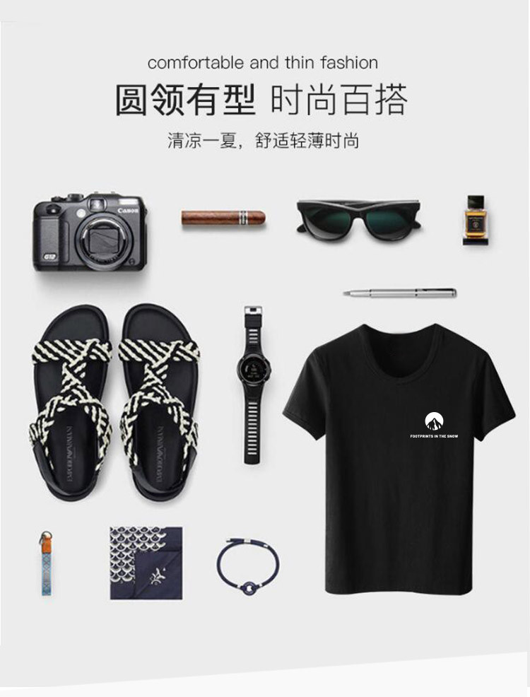 【100%純棉】2021春季爆款t恤男士韓版雪山印花短袖圓領T恤男