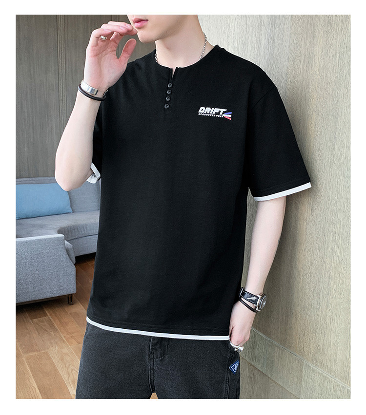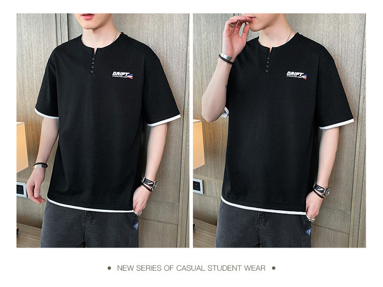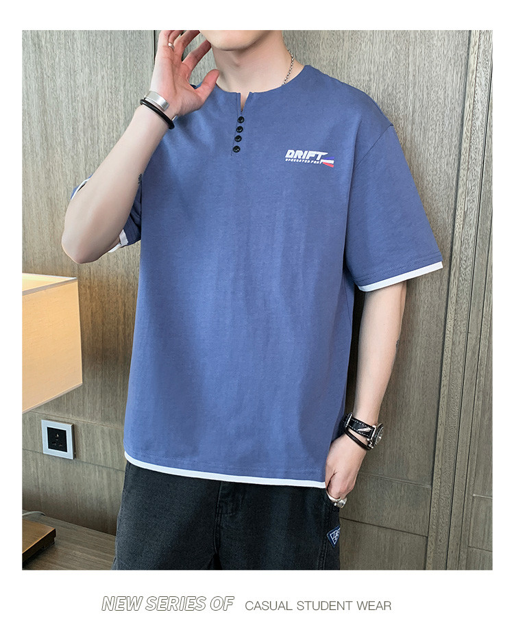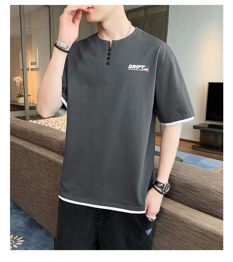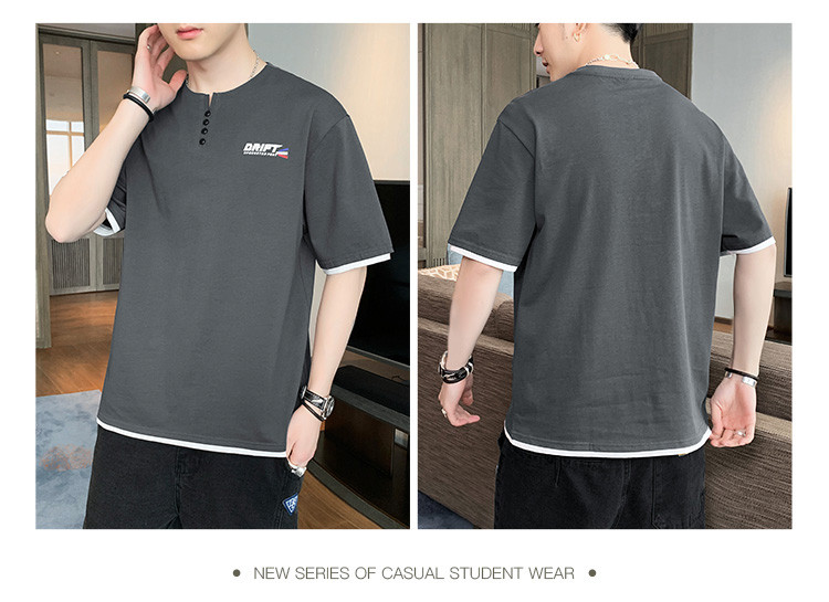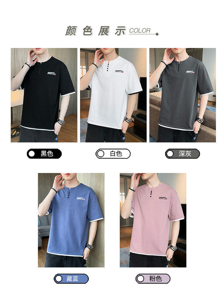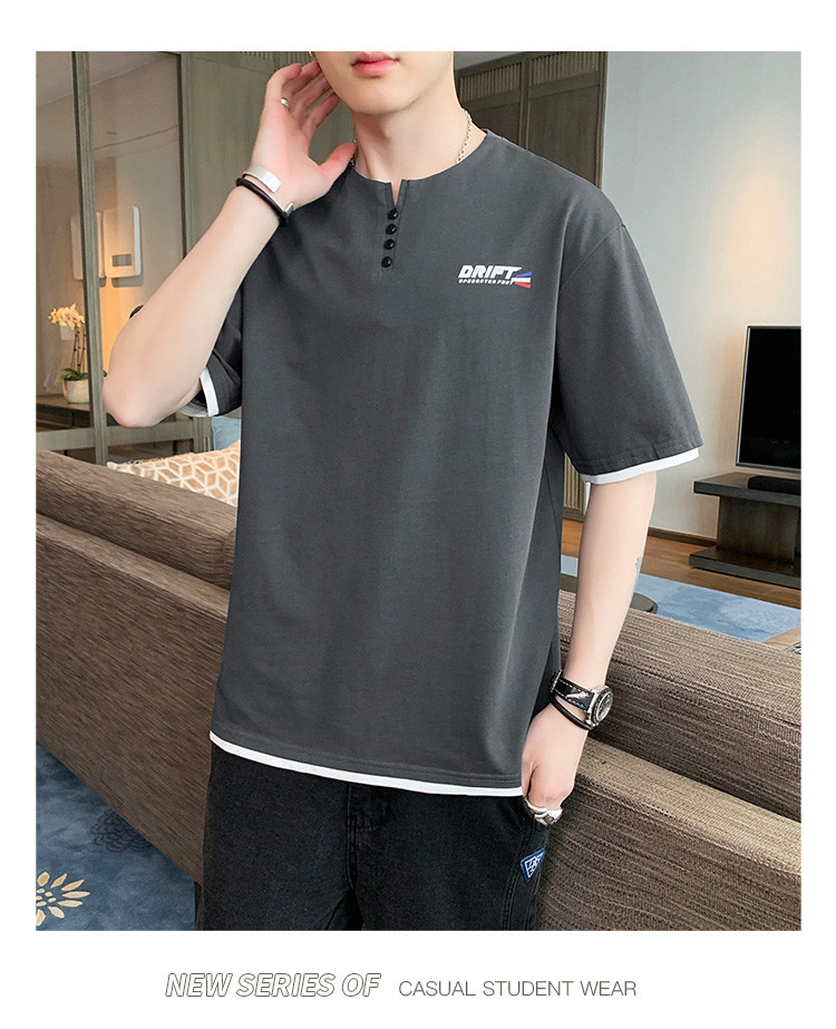 短袖T恤男夏季新款純色寬松百搭假兩件純棉透氣打底衫