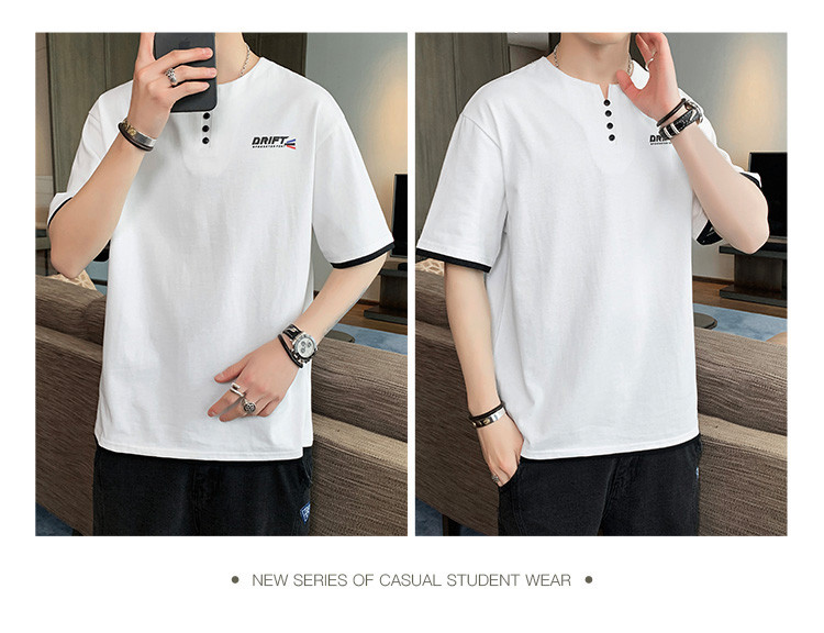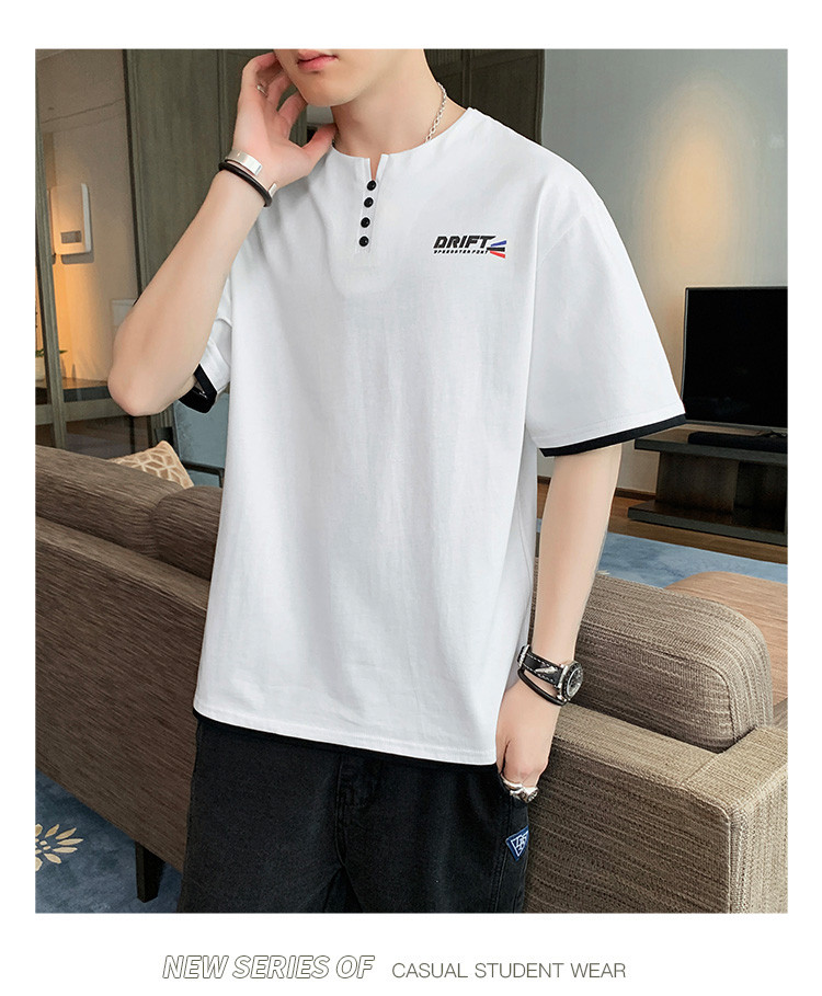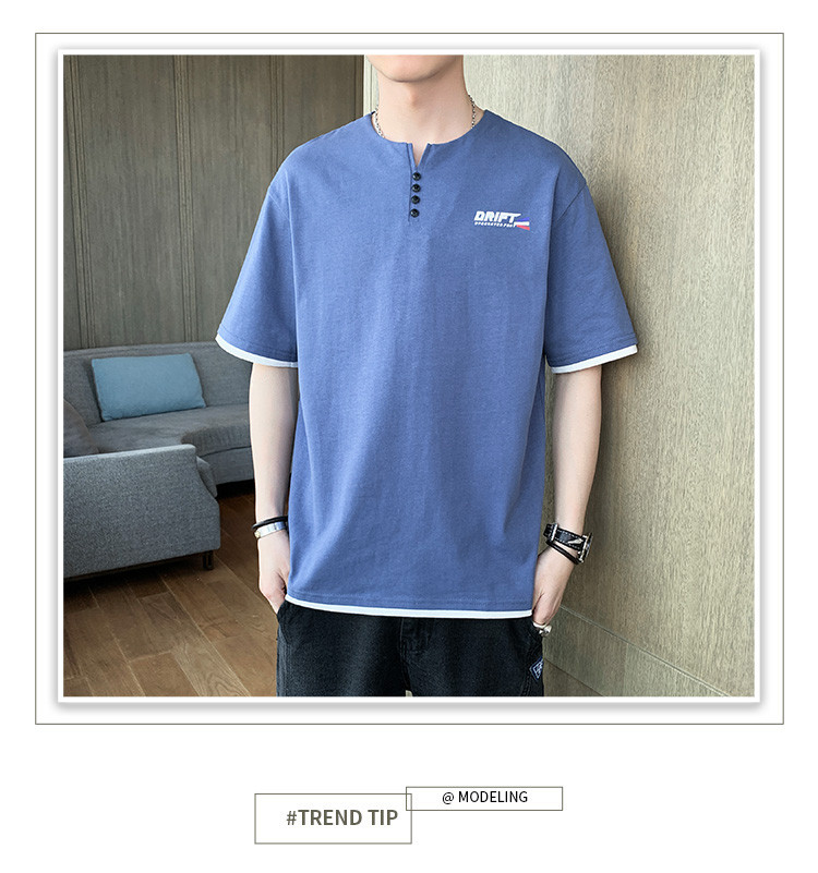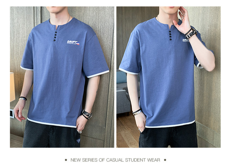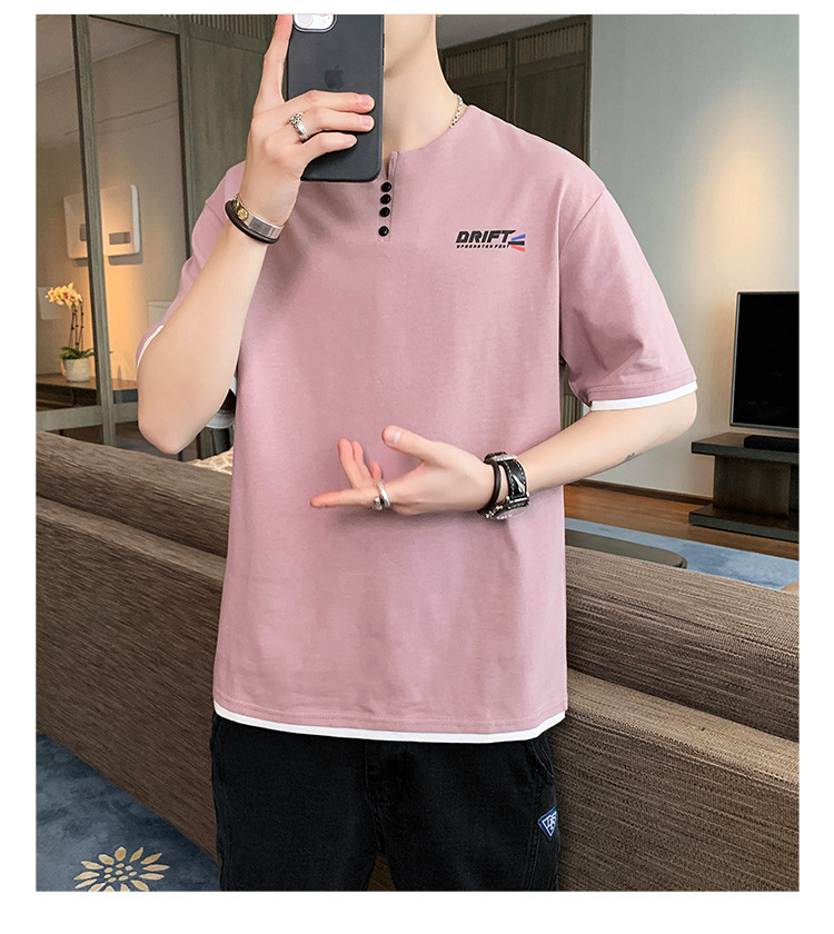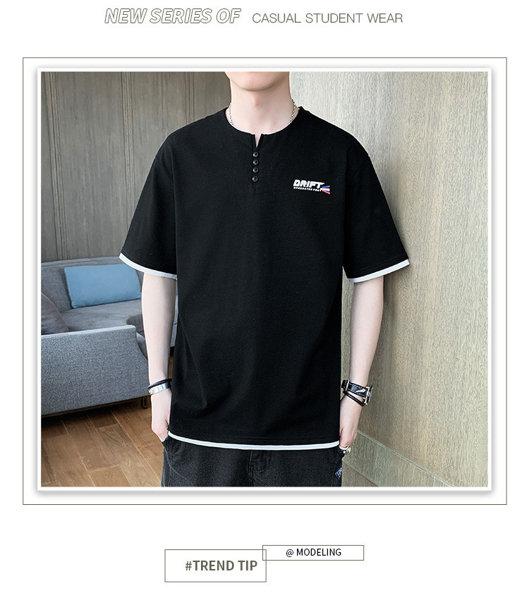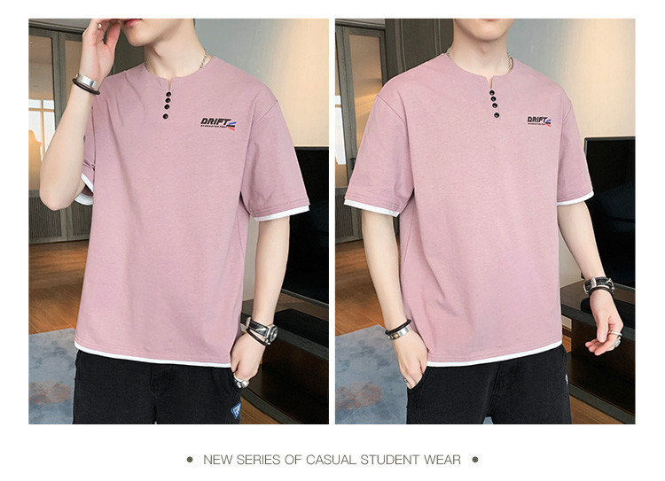 短袖T恤男夏季新款純色寬松百搭假兩件純棉透氣打底衫