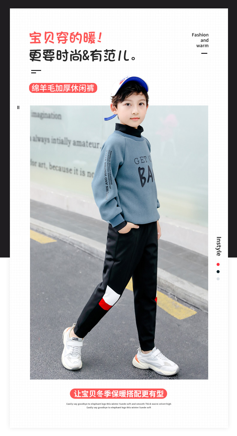 浪莎童裝男童羊毛外穿棉褲秋冬季加絨加厚中大童寶寶保暖運動褲子