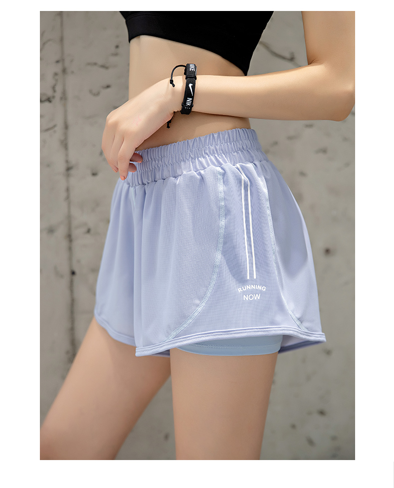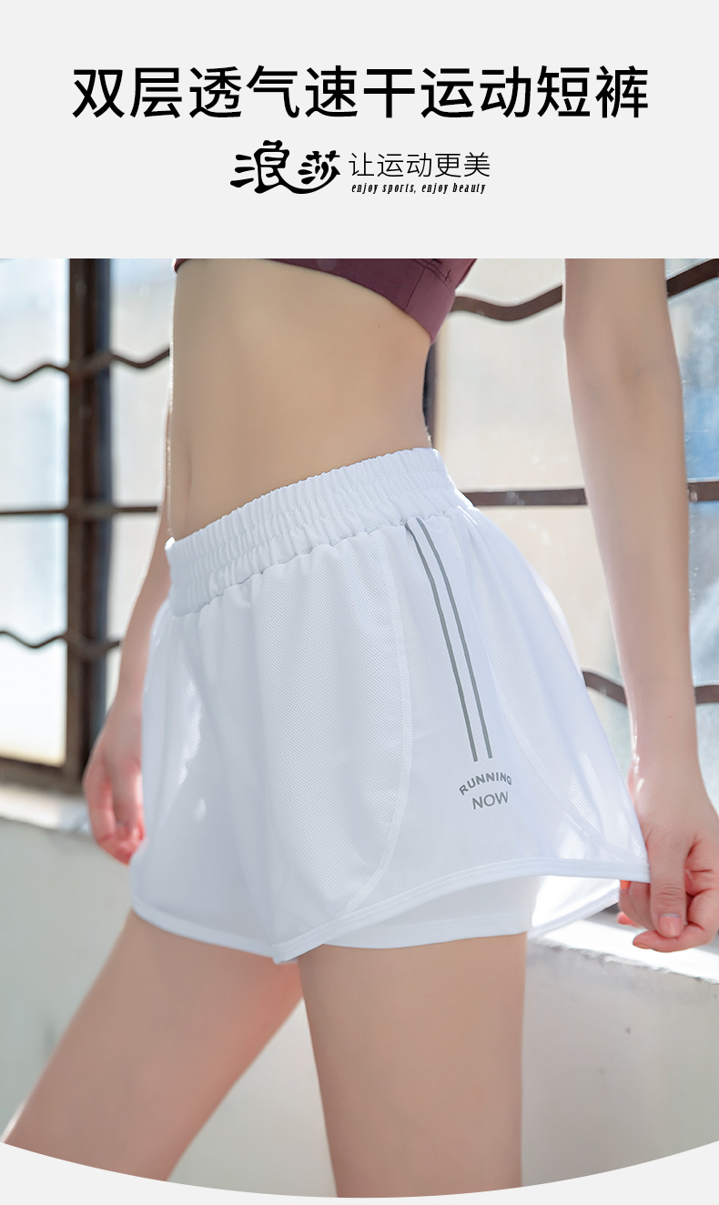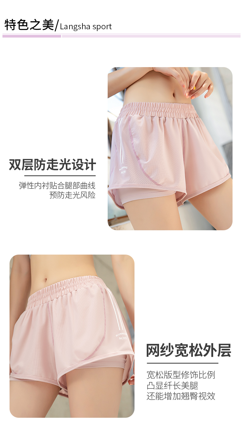 浪莎運動短褲女薄款寬松速干翹臀跑步訓練網紗瑜伽防走光健身短褲