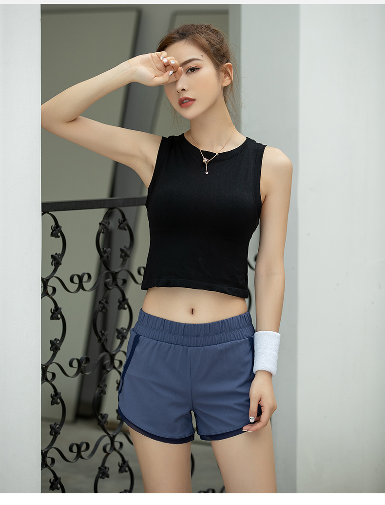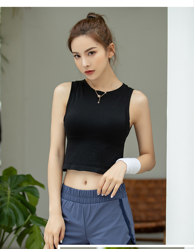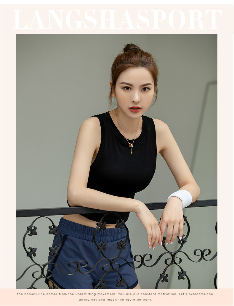 浪莎運(yùn)動(dòng)背心女緊身露臍無(wú)袖跑步瑜伽服上衣罩衫薄款健身速干T恤