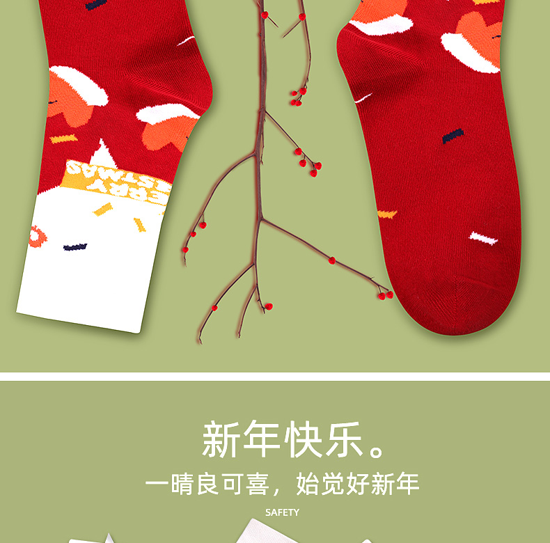 浪莎圣誕襪子女中筒襪秋冬季可愛本命年紅襪子圣誕節(jié)禮盒加厚棉襪